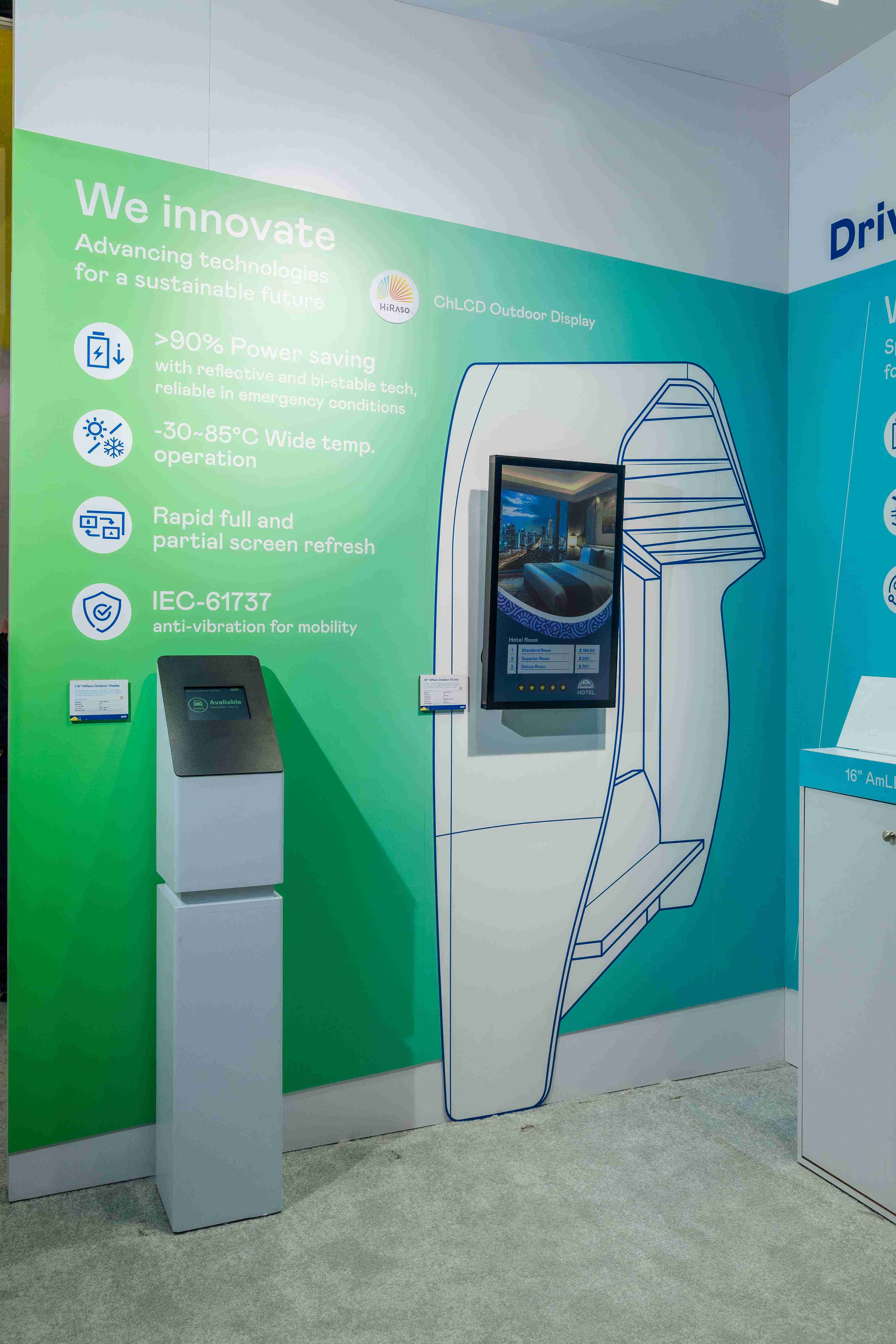 HiRaso胆固醇液晶显示器运用反射环境光线的方式,,,呈现影像显示时零耗能的环保省电诉求,,,,光线愈强愈能呈现绝佳的色彩饱和度及显示效果,,同时在摄氏-30度至85度间宽温的使用优势,,,为户外电子看板的新首选。。