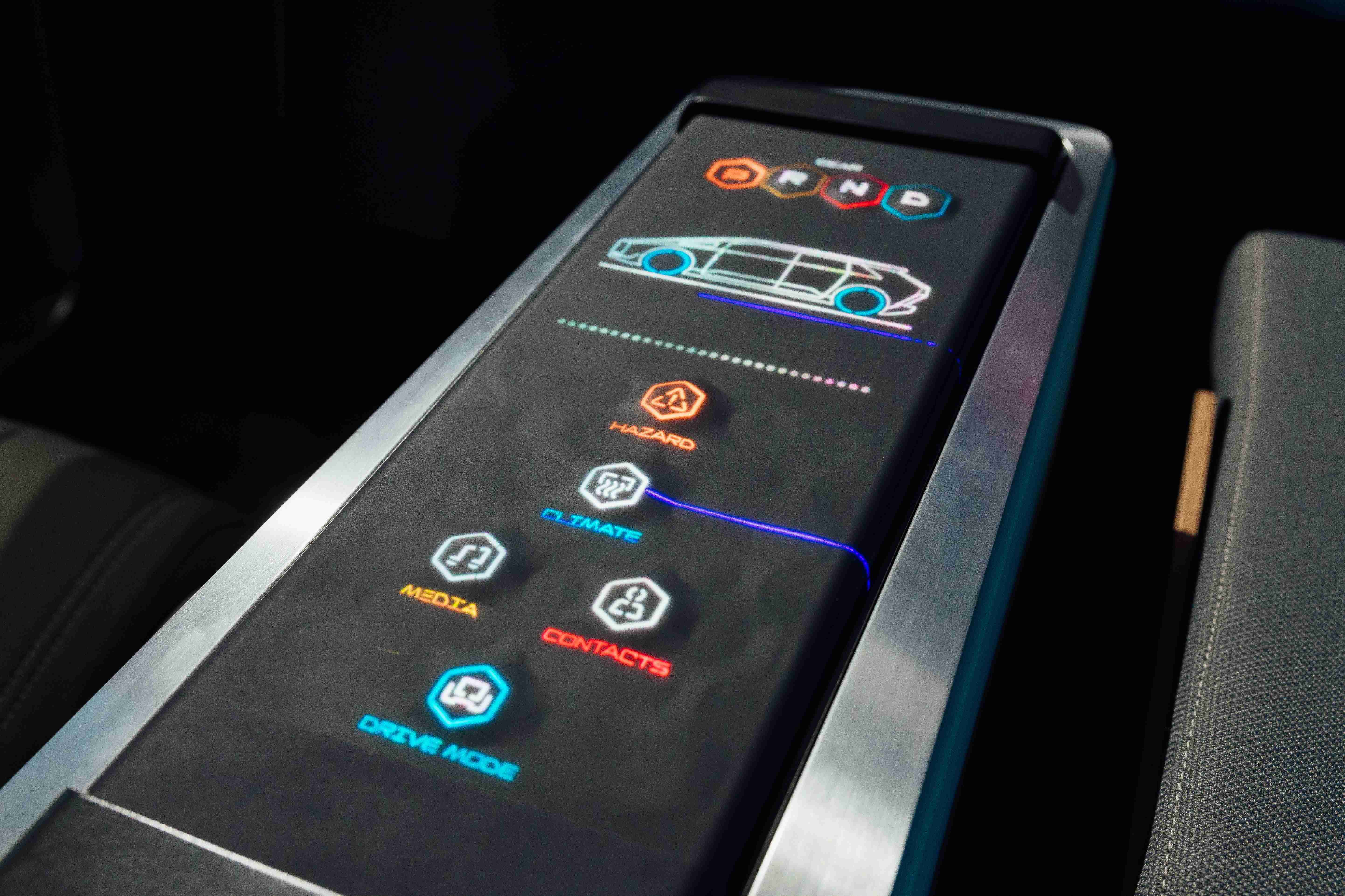 多变形态中控显示(Morphing Center Control)拥有动态变化的表面,,平时常态显示车辆功能,,进一步操作时,,,则会隆起成为3D 按钮,,并在触控时以震动回馈,,,以精细的操作开创人机互动新境界。。。。 ![]()