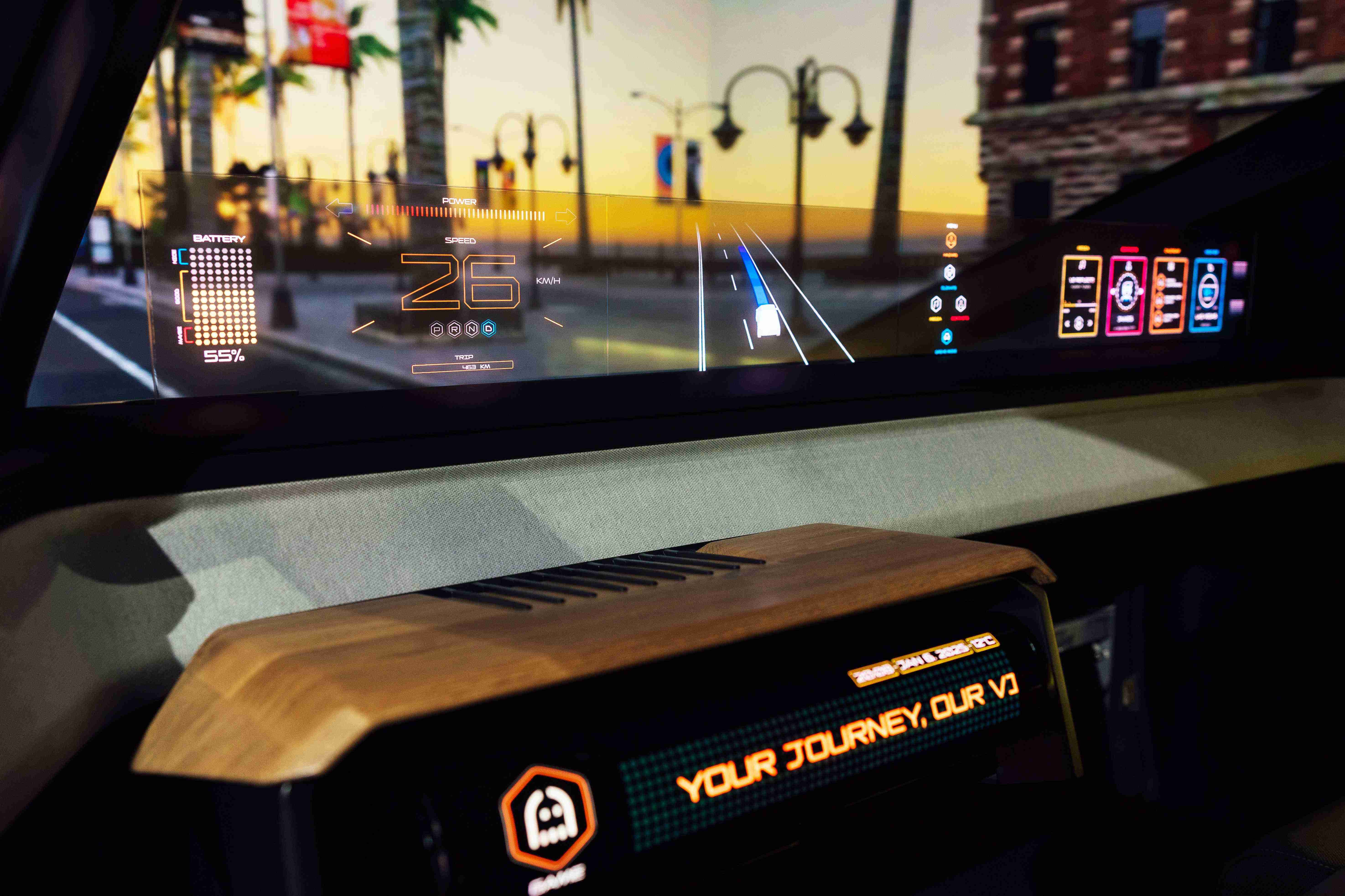 隐藏式智驾介面(Foldable Cruise Pilot)在不同模式下可以切换显示方式,,,,在手动驾驶模式时,,,显示器可以在半收合状态下,,,,仍呈现所需资讯;自驾模式时,,显示器可以完全展开,,,,满足不同的多媒体娱乐需求。。。。 尊龙z6Smart Cockpit 2025 在车头及车尾搭载合作伙伴Ennostar开发的互动式矩阵显示器(Interactive Matrix Display),,其突破传设计框架,,,利用优化的光源整合技术,,,提供更高亮度与对比度的显示效果,,营造驾车者个性化风格并传递讯息。。