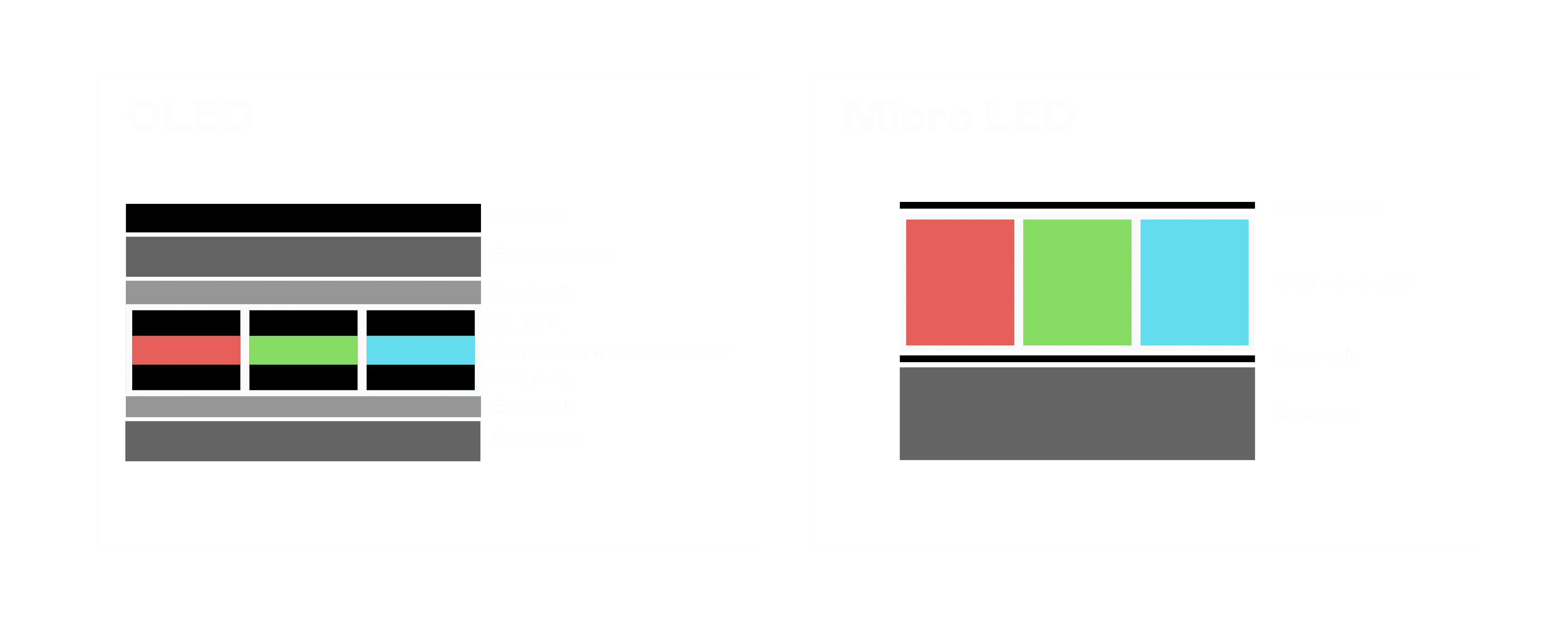 以 LED 做为显示画素,,,可让 LED 的发光效率发挥到极致,,,从而让显示器具备优异的亮度表现,,,,不论是在户外或室内,,,均具备出众的显示效果。。同时,,与使用有机材料的 OLED 相比,,,,LED 具备更稳定、、、、寿命更长的特性,,,不仅不会有画面烙印问题,,,而且更不容易出现故障、、坏点。。。